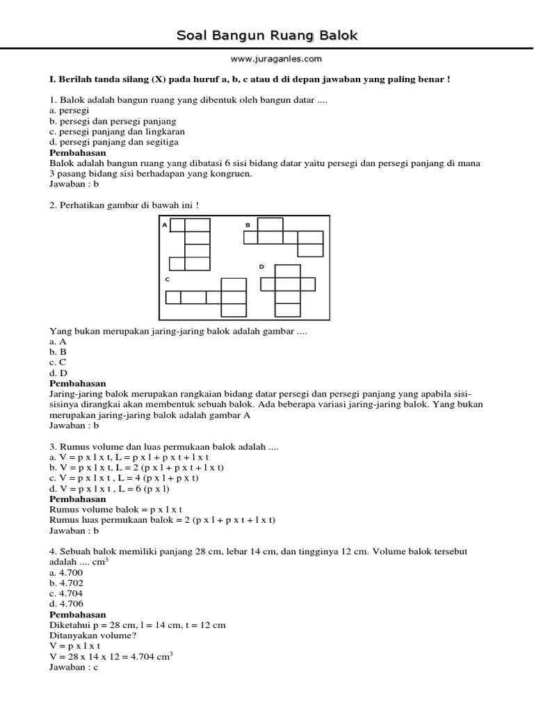 Jawaban soal diatas dibawah ini adalah rumus volume bangun ruang menetukan volume gabungan no. Bangun tersebut merupakan gabungan dua buah bangun, yaitu balok dan setengah tabung. 1 v i = volume balok utuh = p × l × t = 15 × 8 × 6 cm³ = 720 cm³ v. Berikut kami sajikan kumpulan contoh soal bangun ruang beserta jawaban dan pembahasannya yang bisa kamu gunakan sebagai referensi untuk latihan. Sedangkan rumus volume balok adalah v = p x l x t.